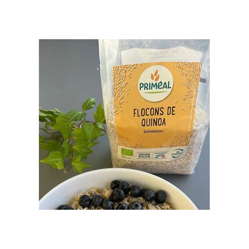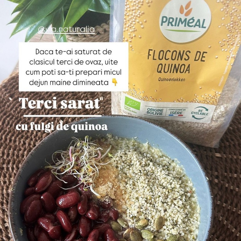 - Fulgi de quinoa bio marca Primeal sunt un produs prefiert ce sunt utilizați la numeroase preparate rapide.