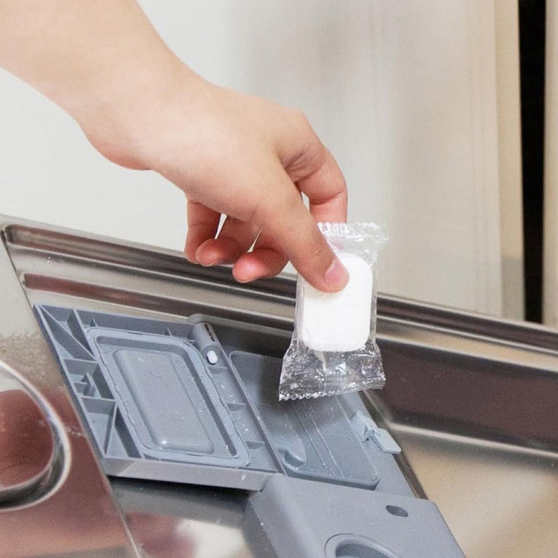 - Pentru utilizare zilnică: Introduceți o tabletă în compartimentul special al mașinii de spălat vase. Nu atingeți tableta cu mâinile ude, pentru a preveni dizolvarea prematură a acesteia.